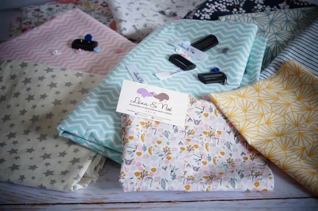 À cette époque ( j’étais en congé parental), j’ai la fâcheuse manie de vendre sur Vinted tout ce qui n’a pas servi depuis plus de 5 jours! Alors vous l’avez compris, je mets en vente le tour de cou. Et je le vends! Alors j’en fais un deuxième, puis un troisième… et je me prends au jeu. Après plusieurs semaines de réflexion, je décide de sauter le pas : je mets un terme à mon congé parental et j’ouvre ma petite entreprise! Et quel autre nom aurais-je pu lui donner que celui de “Léna (pour qui j’ai commencé à coudre) & Noé (qui malgré lui m’a permis de vendre mon premier article !)”